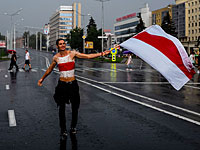 Протестующие идут по проспекту Победителей, скандируют лозунги, несут бело-красно-белые флаги, часть вышла на дорогу для машин. В Минске наблюдаются проблемы с мобильным интернетом, он либо не работает совсем, либо работает очень медленно.
