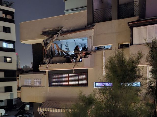 Так выглядит дом напротив после прилёта иранской ракеты. В квартире на последнем этаже больше нет жильцов, они погибли, не вошли в защищенную комнату.