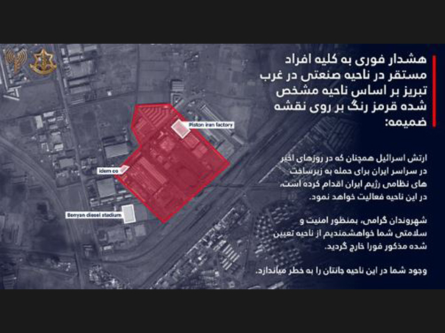 ЦАХАЛ на фарси предупредил жителей Тебриза о предстоящих ударах по военной инфраструктуре