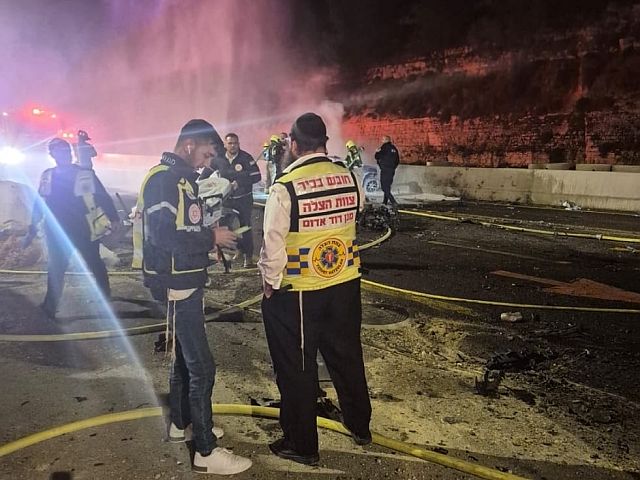 В ночь на 17 марта на 60-й трассе в Иудее, около Неве Даниэль, к югу от Бейт-Лехема, столкнулись грузовик и легковой автомобиль. После аварии оба транспортных средства загорелись.