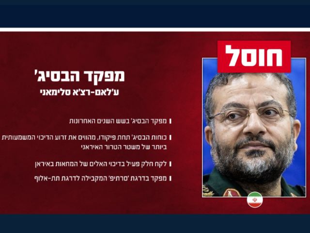 ЦАХАЛ подтвердил ликвидацию одного из самых высокопоставленных командиров иранского режима: в понедельник, 16 марта, ВВС Израиля под точным разведывательным наведением АМАНа нанесли точечный удар в самом сердце Тегерана, ликвидировав Голамрезу Сулеймани. Сулеймани в течение последних шести лет командовал формированием "Басидж".