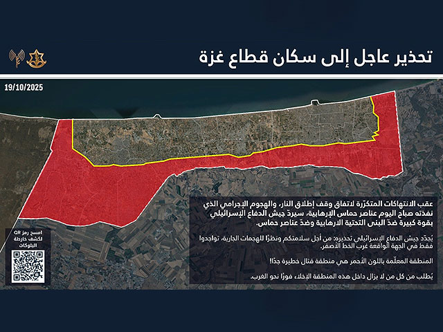 В воскресенье, 19 октября, ЦАХАЛ опубликовал предупреждение для жителей сектора Газы о том, что удары по инфраструктуре ХАМАС продолжатся.