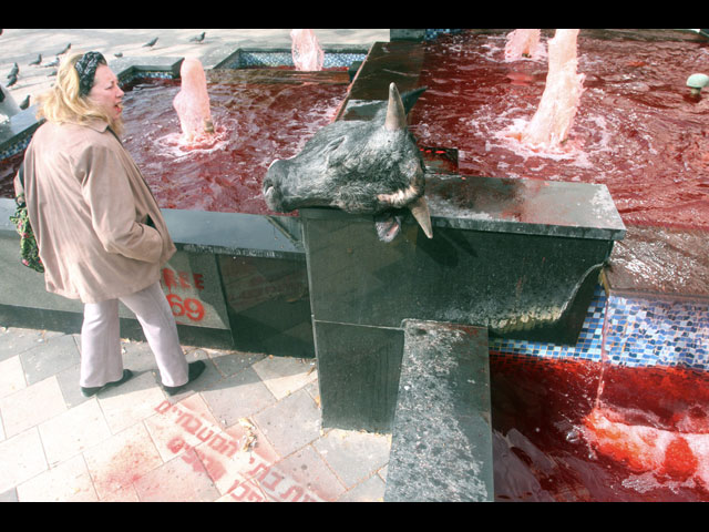 Акция против забоя скота: отрубленные головы и кровавые фонтаны в Тель-Авиве. ФОТО