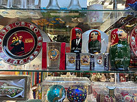 Читатели NEWSru.co.il обратили внимание, что в витрине одного из магазинов русских сувениров и книг в Тель-Авиве выставлены "матрёшки" с изображением Сталина и Ленина, тарелки с символикой советских республик, граненый стакан с гербом СССР и другие "ностальгические" сувенирные изделия.