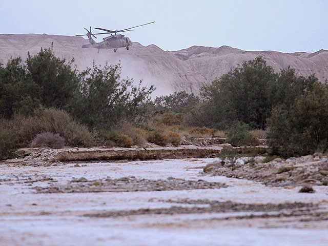 Пожарные, полиция, армейские подразделения и вертолет авиационного подразделения полиции ведут поиск нескольких иностранных рабочих, унесенных паводком в русле реки Арава.