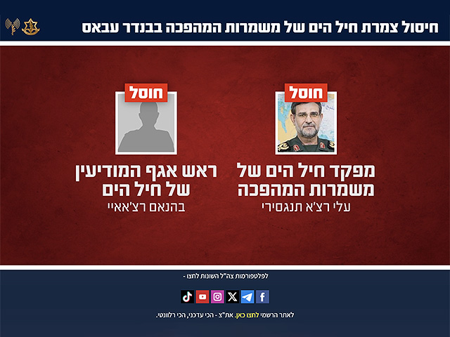 По сообщению ЦАХАЛа, ВВС Израиля, действуя по точному наведению АМАНа и разведывательного управления ВМС Израиля, в ночь на четверг нанесли удар по Бендер-Аббасу и ликвидировали Алирезу Тангсири, который на протяжении последних восьми лет командовал военно-морскими силами Корпуса стражей исламской революции.