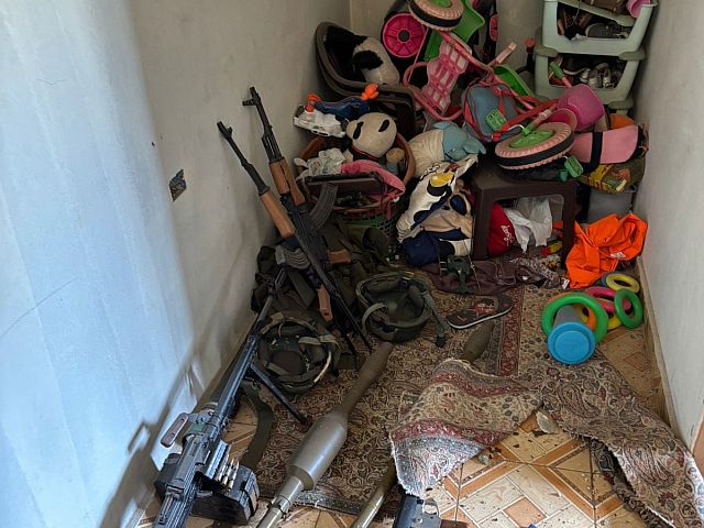 В ходе рейда в районе Адашит аль-Кусайр военнослужащие обнаружили склад оружия, размещенный в детской комнате: там находились взрывные устройства, автоматы Калашникова, гранаты, ракеты RPG, пулеметы, боеприпасы и боевое снаряжение.
