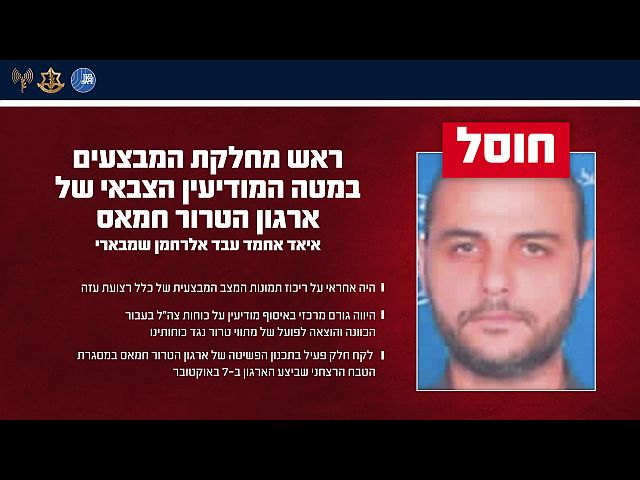 ЦАХАЛ и общая служба безопасности (ШАБАК) сообщили о ликвидации на севере сектора Газы Ияда Ахмада Абд ар-Рахмана Шамбари, возглавлявшего оперативный отдел штаба военной разведки ХАМАСа.