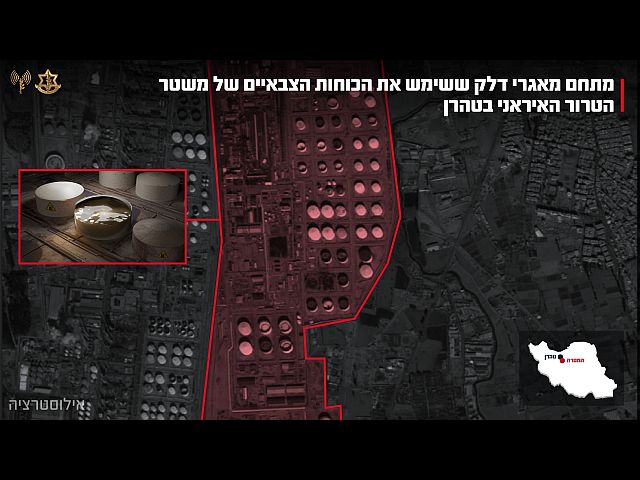 Пресс-служба ЦАХАЛа сообщила, что ВВС Израиля "некоторое время назад" нанесли удар по нескольким топливным хранилищам в Тегеране, которые использовались военными силами иранского режима. В заявлении подчеркивается, что удар был нанесен при точном наведении военной разведки (АМАН) и в координации с оперативным управлением генштаба.