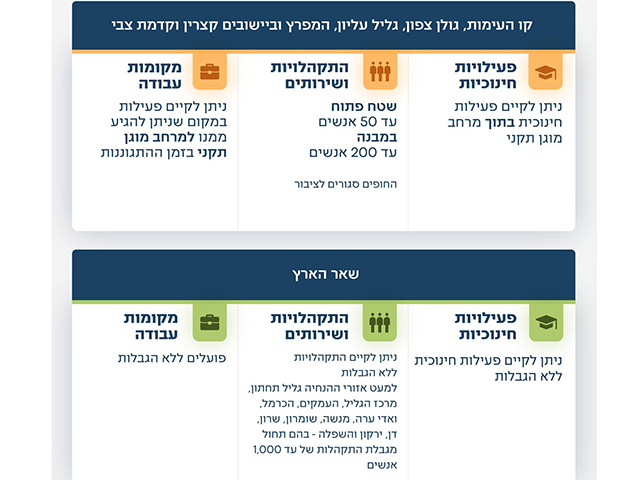 На "линии противостояния", на севере Голанских высот, в Верхней Галилее, в Хайфском заливе, а также в Кацрине и Кидмат-Цви продолжат действовать ограничения: