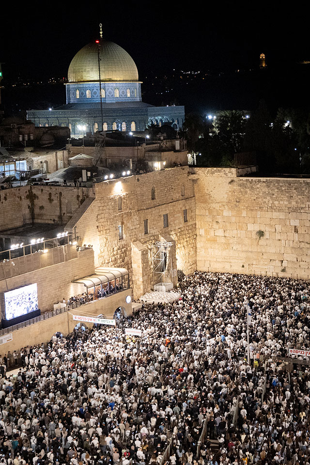 Верующие евреи продолжают собираться у Стены Плача в Старом городе Иерусалима для чтения традиционных молитв "Слихот" в канун Йом Кипур (Дня Искупления).