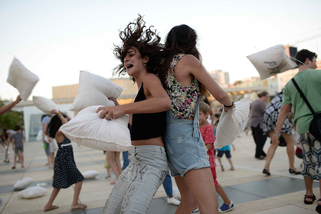 В субботу, 20 августа, на площади около театра "Габима" в Тель-Авиве прошел бой подушками, в котором приняли участие десятки израильтян. Традиция эта начиналась как обычный "флешмоб" в 2006-м году в Лондоне, где подобные бои проводятся весной.