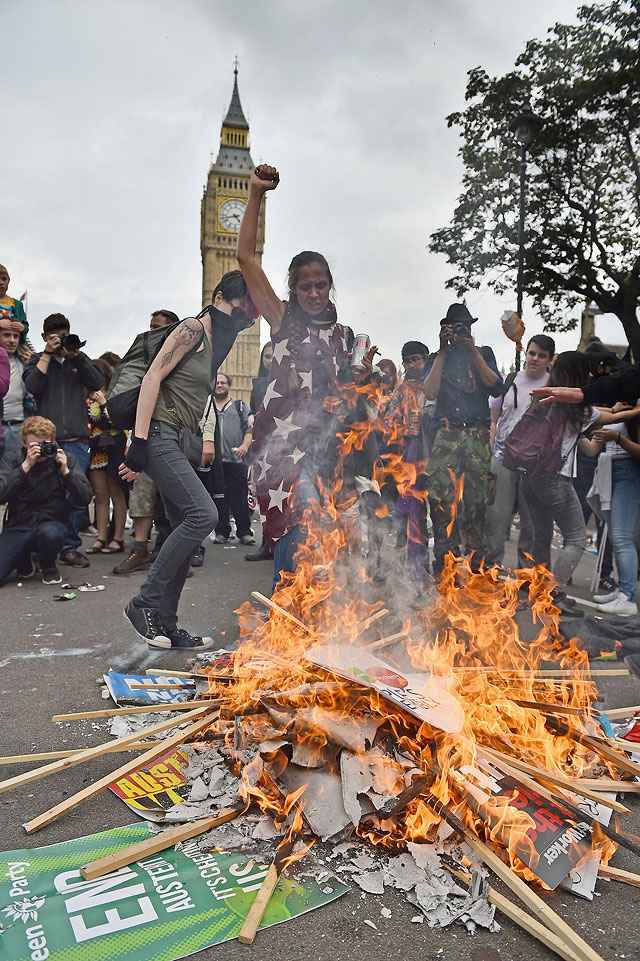 "NO CUTS!": антиправительственная демонстрация в "горящем" Лондоне