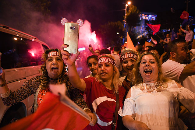Сторонники Эрдогана празднуют победу в Турции. Фоторепортаж