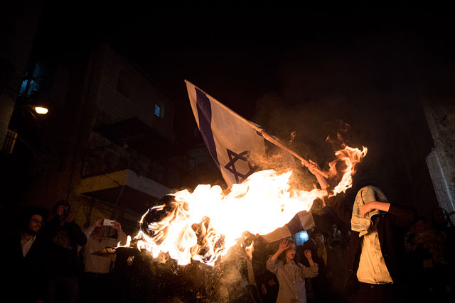 Некоторые представители ультрарелигиозной общины, в частности представители движения "Нетурей Карта", в этот праздничный день демонстрируют свое неприятие еврейского государства, сжигая флаги Израиля.