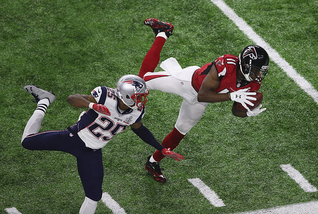 Клуб "Нью-Инглэнд Пэтриотс" одержал феноменальную победу над "Атлантой Фэлконс", безнадежно проигрывая, сравняв счет в последней 15-минутке и одолев противника в овертайме.