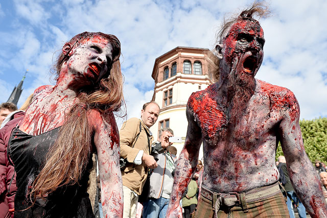 Как пишет 6 сентября местное издание Tonight, они бродили по старинным улочкам " с пустыми глазами и окровавленными, изуродованными шрамами лицами, как будто только что вылезли из могил", и пугали прохожих жуткими криками. Те, однако, не испугались "нашествия зомби", а радостно к ним присоединялись.