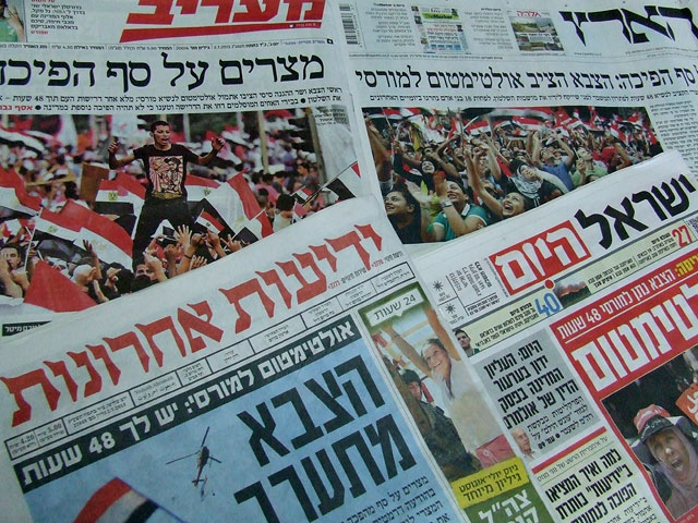 На первых полосах всех израильских СМИ снова события в Египте, где растет число убитых и раненых в беспорядках. В понедельник армия выдвинула президенту Мурси ультиматум о достижении соглашения с оппозицией в течение 48 часов.