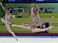 В упражнениях с обручами и булавами первое место заняла сборная Беларуси, второе - Узбекистана.