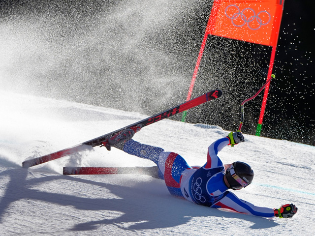 Олимпиада. Скоростной спуск. Французский горнолыжник вылетел с трассы