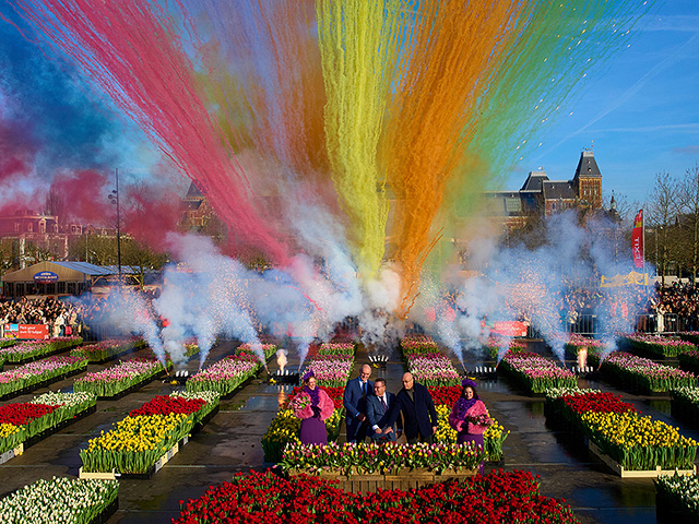 Знаменитая музейная площадь на время превратилась в пестрое цветочное поле: лужайка покрылась тысячами тюльпанов ярких красных, желтых и розовых оттенков. Праздничная инсталляция, посвященная приходу весны и многовековой связи Нидерландов с этим символическим цветком, была открыта для всех желающих – каждый мог самостоятельно собрать букет и унести его с собой.