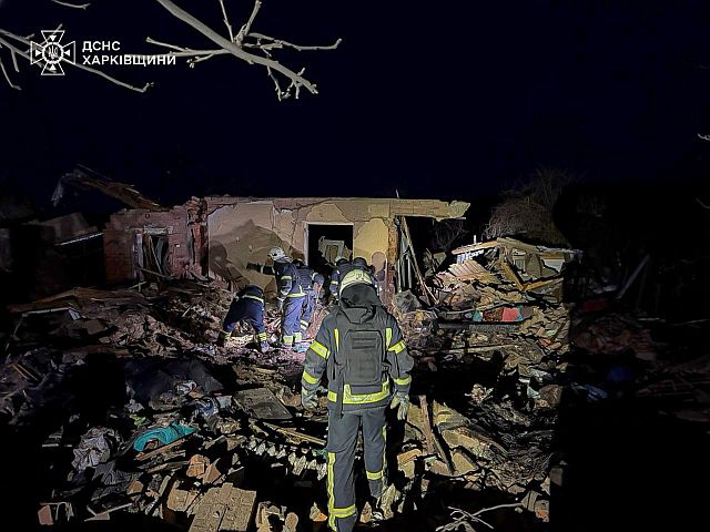 "Одно из попаданий пришлось по жилому дому, он был полностью разрушен. Возник пожар на площади 50 м кв., который был ликвидирован. Из-под завалов извлечены тела двух погибших: женщины и десятилетнего мальчика", – говорится в сообщении ГСЧС по Харьковской области.